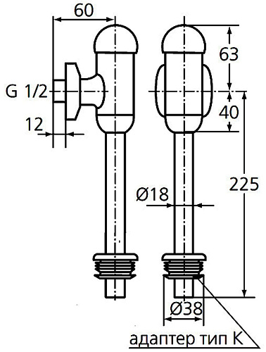 Смывной механизм для писсуара 1/2" без регулировки (нажимной), для верхней подводки.