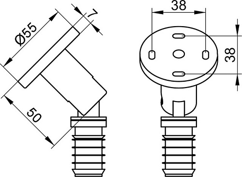 Оснащение Заглушка, для скошенных потолков, плавно переставляется на 10-80 градусов.