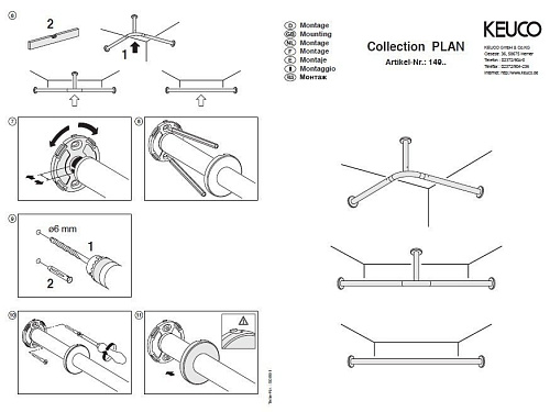 Крепление Keuco 14935010000 Plan настенное для штанги, хром/белый купить по доступной цене
