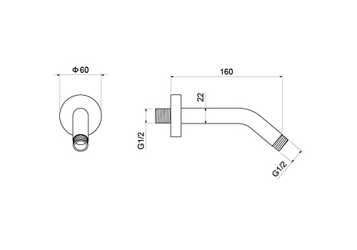 прочная конструкция из нерж.; устанавливается на стену; 160 мм длинной; соединительная резьба 1/2"; в комплекте держатель с креплением; совместим с большинством душей; простота в установке