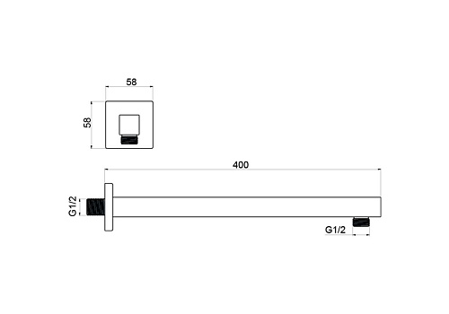 прочная конструкция из нерж.; установка на стену; 400 мм длинной; соединительная резьба 1/2"; в комплекте держатель с креплением; совместим с большинством душей; простота в установке