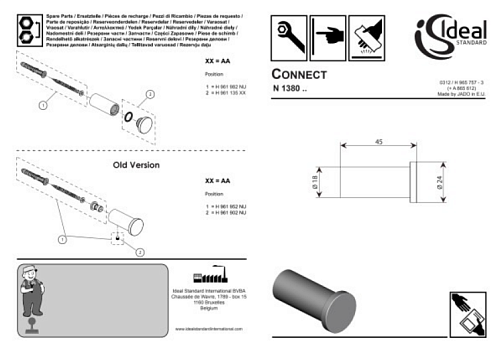 Крючок Ideal Standard N1380AA Connect для полотенец, одинарный, Chrome (хром)