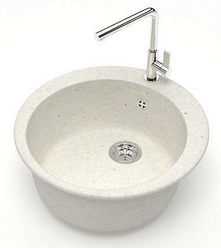 Кухонная мойка изготовлена из современных экологически чистых материалов, природного молотого кварца, мрамора или гранита с добавлением специальных пигментов и красителей.
