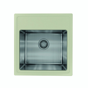 Материал столешницы мойки - кварцевый композит;;Материал чаши мойки - нержавеющая сталь марки AISI 304, толщина 1 мм;В комплект входит отводная арматура с выпуском 3 ? ” (D=90 мм) и переливом, набор крепежей, трафарет;;вес брутто 10.7 кг;Габариты брутто ( ДхШхВ) 562х532х299 мм;Габариты нетто ( ДхШхВ ) 480х510х200 мм