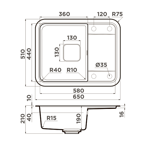 • Кухонная мойка OMOIKIRI изготовлена из матриала «Artgranit», технология производства которого заключается в том, что частицы кварца, гранита и прочного связующего полимера нового поколения, свойства которого похожи на акриловую смолу, соединяют вместе и помещают в форму. После застывания получается готовая мойка; • Помимо гранита, в состав материала входит молотый кварц мельчайших размеров, которому характерны непревзойденная прочность и устойчивость к природным и химическим воздействиям. Свойства данного компонента вместе с долговечностью гранита обеспечивают мойке прочность и делают её устойчивой к любым механическим повреждениям: деформациям, сколам; • Мойки из «Artgranit» надежны, прочны и долговечны в эксплуатации, за счет большой палитры оттенков, позволяют подобрать мойку в цвет столешницы и прекрасно впишутся в любой интерьер; • Материал «Artgranit» выдерживает высокие температуры до 280°С (но не стоит ставить на поверхность мойки горячие сковородки и кастрюли, т.к их температура может достигать 500°С).