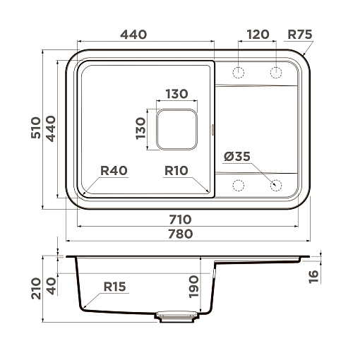 • Кухонная мойка OMOIKIRI изготовлена из матриала «Artgranit», технология производства которого заключается в том, что частицы кварца, гранита и прочного связующего полимера нового поколения, свойства которого похожи на акриловую смолу, соединяют вместе и помещают в форму. После застывания получается готовая мойка; • Помимо гранита, в состав материала входит молотый кварц мельчайших размеров, которому характерны непревзойденная прочность и устойчивость к природным и химическим воздействиям. Свойства данного компонента вместе с долговечностью гранита обеспечивают мойке прочность и делают её устойчивой к любым механическим повреждениям: деформациям, сколам; • Мойки из «Artgranit» надежны, прочны и долговечны в эксплуатации, за счет большой палитры оттенков, позволяют подобрать мойку в цвет столешницы и прекрасно впишутся в любой интерьер; • Материал «Artgranit» выдерживает высокие температуры до 280°С (но не стоит ставить на поверхность мойки горячие сковородки и кастрюли, т.к их температура может достигать 500°С).