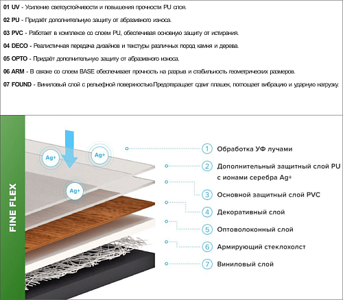 Кварц-виниловая плитка Fine Flex подходит как для коммерческих, так и жилых помещений. Данный декор кварцвинила LVT не боится воды, поэтому его можно использовать в ванной или на кухне.