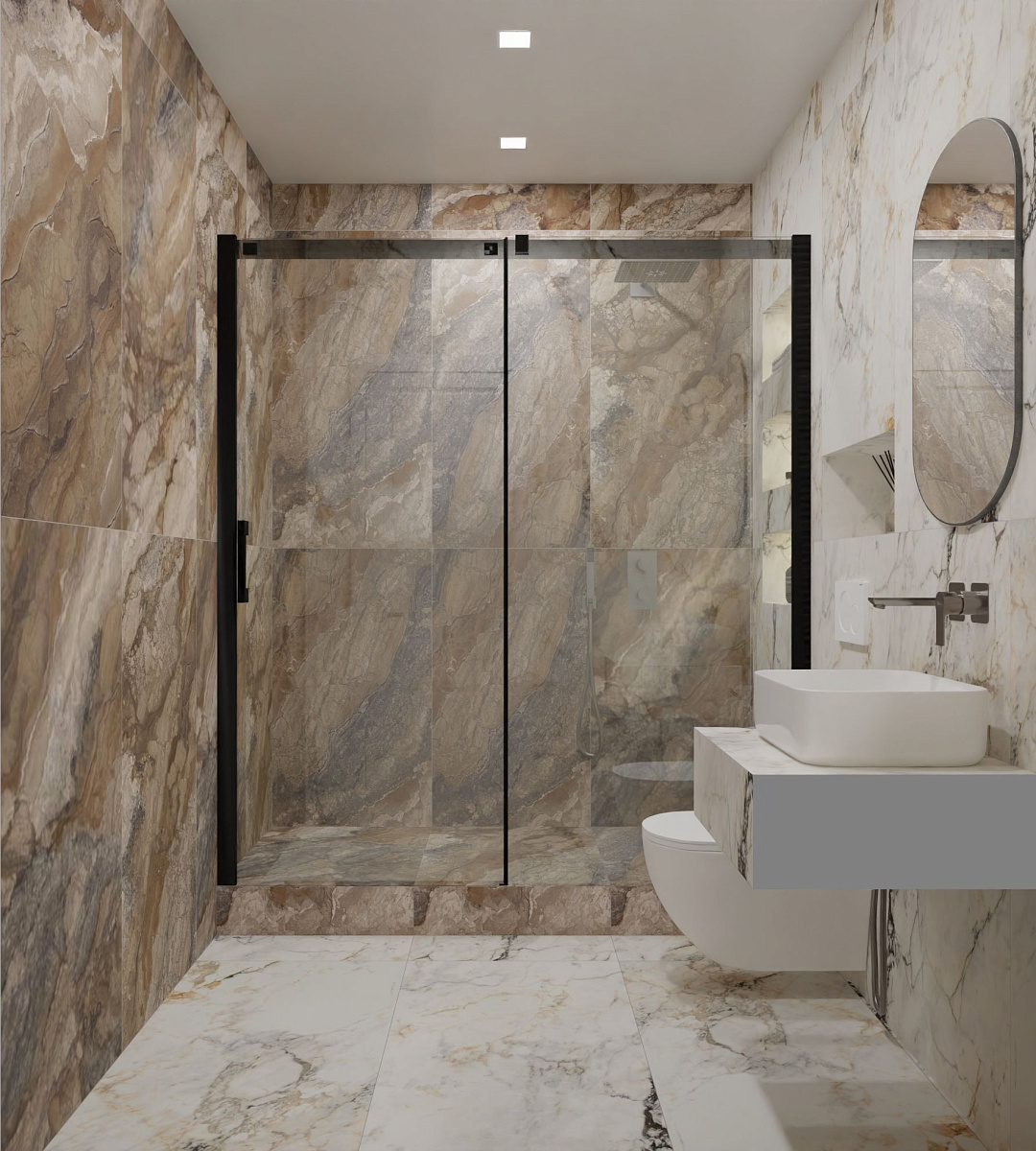 Глазурованный керамогранит под мрамор, размер 60*120. В стиле Неоклассика. Поверхность матовая. Подходит для ванной комнаты, кухни, жилых и коммерческих помещений.
