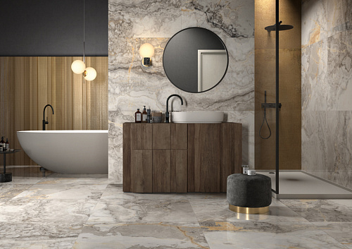 Глазурованный керамогранит под мрамор, размер 60*60. В стиле Неоклассика. Поверхность матовая. Подходит для ванной комнаты, кухни, жилых и коммерческих помещений.