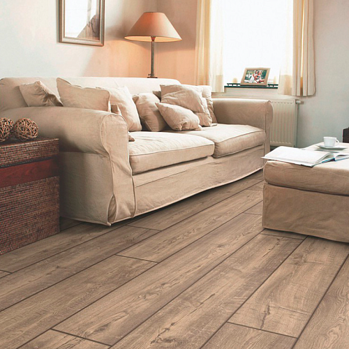 Quick Step - уникальный бренд, его ламинат имеет исключительно стильный и естественный вид, а также обладает высокой устойчивостью к царапинам. В ламинате Quick-Step применена технология Scratch Guard, или Защитник от царапин. В его верхнем слое находятся частички корунда определённого размера (второго по твердости минерала после алмаза), которые равномерно распределены по всей поверхности плашки.