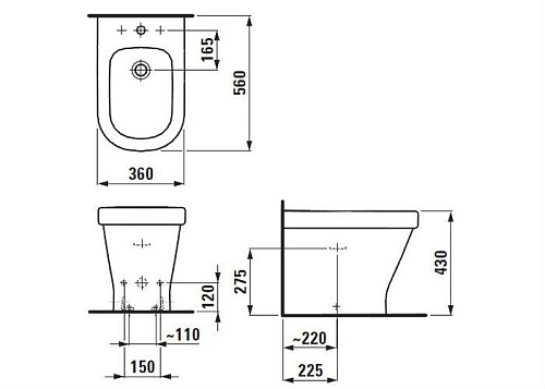 Биде напольное Laufen 8.3268.1.000.302.1 LB3, 36х56 см, белое