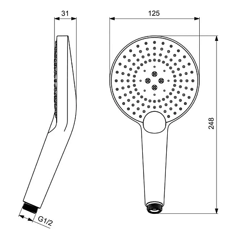 IDEALRAIN Лейка душевая EVO JET ROUND XL3, диаметр лейки 125 мм, количество функций: 3, режим струи: Rain (Дождь), Smart Rain (Бодрящий дождь), Massage (Массаж), самоочищающаяся лейка, ограничение потока 8 л/мин.