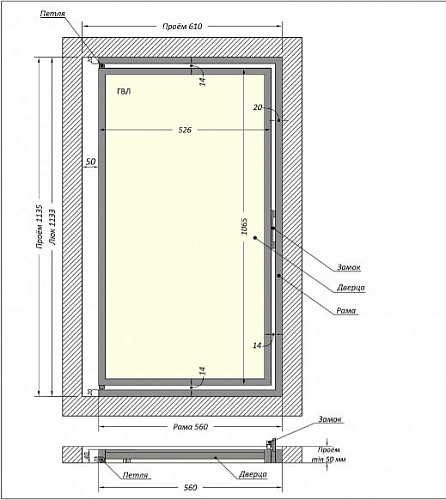Люк ревизионный сантехнический SHAGMA /ШАГМА 35ЛС600х1100В
