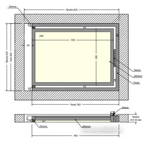 Люк ревизионный сантехнический SHAGMA /ШАГМА ЛС800x600Г купить по доступной цене