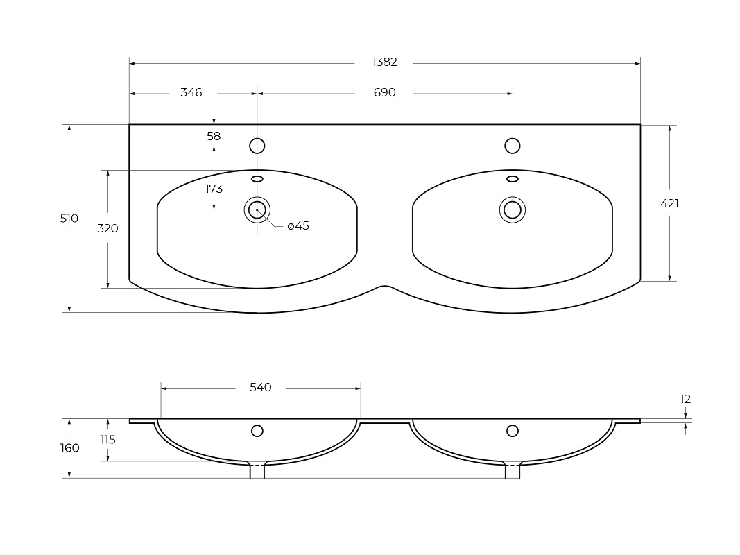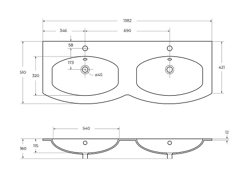 Раковина Cezares 50156 с двумя чашами, 138x52 см, белый