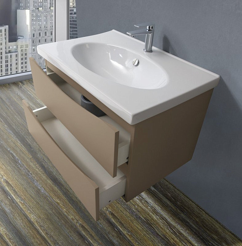 Артикул:FLY-700-2C-SO-CL-P, База под керамическую раковину подвесная с двумя выкатными ящиками, 710x465x450,Исполнение:Cappuccino Lucido,