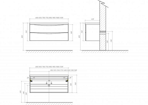 База подвесная под раковину. Система хранения: 2 выдвижных ящика.