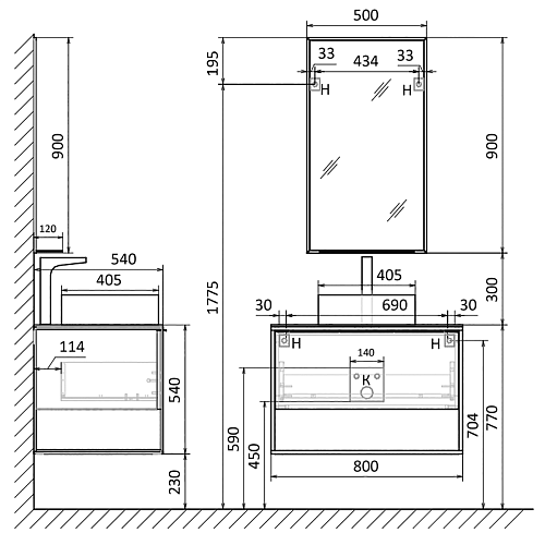 Мебель для ванных Aquanika LOFT AQLO805550BRU104