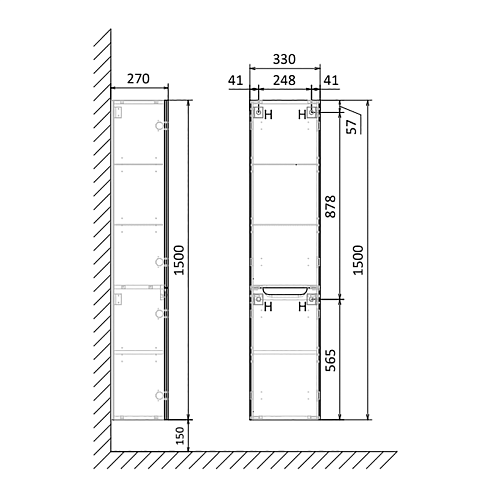 Пенал Aquanika WOOD AQW3327150WRU85 150 см. белый