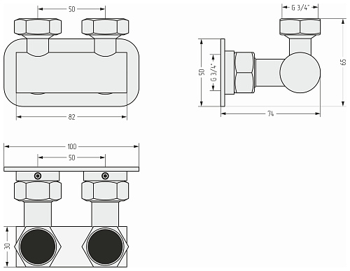 Присоединительный размер: 2 х НГ G 3/4" / 2 х НГ G 3/4".