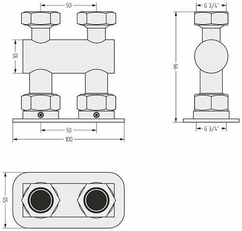 Присоединительный размер: 2 х НГ G 3/4" / 2 х НГ G 3/4".
