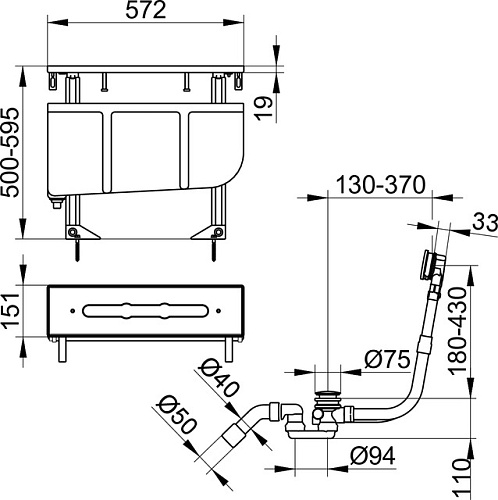 Оснащение Гибкая подводка G1/2xG 1/2, (400 мм) для монтажа с угловыми вентилями, емкость для сточной воды, вкл. защитную систему от перелива с соединительным шлангом, слив?перелив G1.1/2 дюйма.