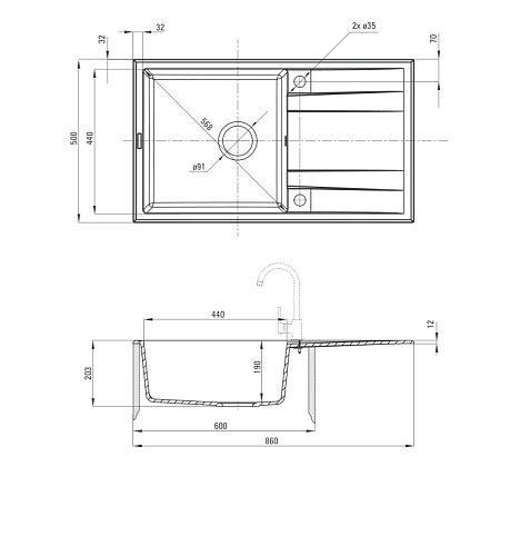 Способ монтажа: впускаемый. Минимальная ширина шкафа [мм]: 600. Глубина чаши 1 [мм]: 190. Вырез в столешнице (впускаемая) - длина [мм]: 840. Вырез в столешнице (впускаемая) - ширина [мм]: 480. Универсальный: да. Количество готовых отверстий: 2. Количество фрезерованных отверстий: 0. Отделка: сталь. Вид клапана: автоматический. Компактный сифон Space-Saver: да. Телескопический сифон: да. Возможность подключения посудомоечной/стиральной машины: да. Свойства гранита Deante: ударопрочность, выносливость на высокую температуру, обесцвечивание, термический удар. Самая продолжительная гарантия 18 лет. Мойка с сифоном для подключения к посудомоечной машине. Гидрофобные свойства отталкивают молекулы воды. Исключительно просторная и глубокая чаша вмещает даже противни, вынутые из духовки. Возможность приобрести крючок для губки, который идеально подходит к данной модели. Можно приобрести поручень для полотенца, идеально подходящий к данной модели. Реверсивная мойка - установите чашу слева или справа. Компактный сифон Space-saver позволяющий ограничит место под мойкой. Автоматический клапан, управляемый кнопкой Click. Специальное средство, безопасное для очищаемых поверхностей.