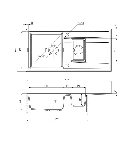Способ монтажа: впускаемый. Минимальная ширина шкафа [мм]: 800. Глубина чаши 1 [мм]: 190. Глубина чаши 2 [мм]: 140. Вырез в столешнице (впускаемая) - длина [мм]: 980. Вырез в столешнице (впускаемая) - ширина [мм]: 480. Универсальный: да. Количество готовых отверстий: 2. Количество фрезерованных отверстий: 0. Вид клапана: автоматический, с кнопкой. Компактный сифон Space-Saver: да. Возможность подключения посудомоечной/стиральной машины: да. Свойства гранита Deante: ударопрочность, выносливость на высокую температуру, обесцвечивание, термический удар. Самая продолжительная гарантия 18 лет. Мойка с сифоном для подключения к посудомоечной машине. Гидрофобные свойства отталкивают молекулы воды. Исключительно просторная и глубокая чаша вмещает даже противни, вынутые из духовки. Дополнительное многофункциональное небольшое отделение — например, для промывания овощей и фруктов или подключения кофемолки. Реверсивная мойка - установите чашу слева или справа. Арматура, равномерно окрашенная в массе. Автоматический клапан, управляемый кнопкой Click. Компактный сифон Space-saver позволяющий ограничит место под мойкой. Специальное средство, безопасное для очищаемых поверхностей.