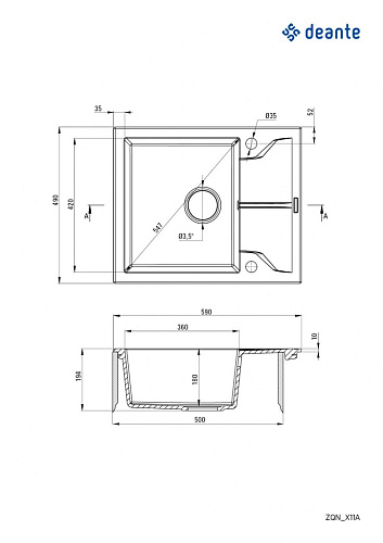Способ монтажа: впускаемый. Минимальная ширина шкафа [мм]: 500. Глубина чаши 1 [мм]: 180. Вырез в столешнице (впускаемая) - длина [мм]: 570. Вырез в столешнице (впускаемая) - ширина [мм]: 470. Универсальный: да. Количество готовых отверстий: 2. Количество фрезерованных отверстий: 0. Отделка: сталь. Вид клапана: автоматический. Компактный сифон Space-Saver: да. Возможность подключения посудомоечной/стиральной машины: да. Свойства гранита Deante: ударопрочность, выносливость на высокую температуру, обесцвечивание, термический удар. Самая продолжительная гарантия 18 лет. Мойка с сифоном для подключения к посудомоечной машине. Аксессуары с автоматическим отключением слива. Гидрофобные свойства отталкивают молекулы воды. Реверсивная мойка - установите чашу слева или справа. Специальное средство, безопасное для очищаемых поверхностей. Компактный сифон Space-saver позволяющий ограничит место под мойкой.