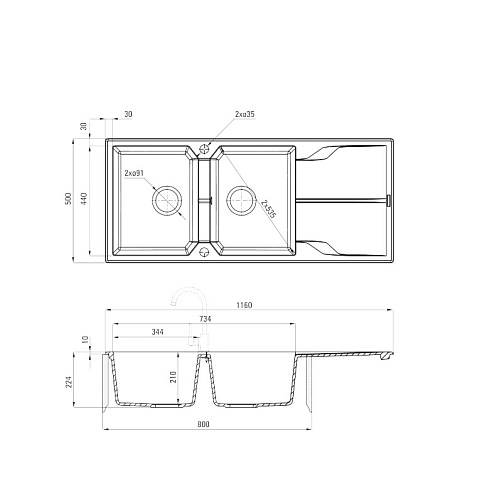 Мойка Deante ZQN_N213 Andante кухонная гранитная 116х50 см, Nero (черный) купить по доступной цене