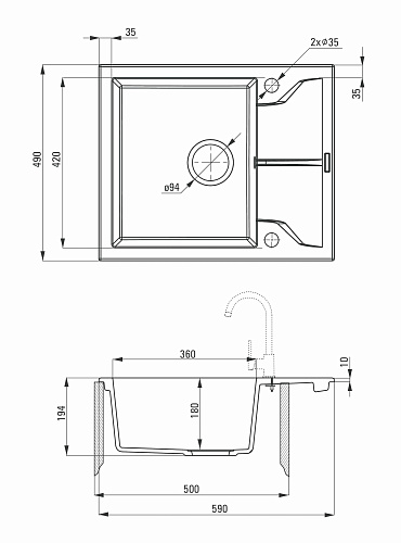 Способ монтажа: впускаемый. Минимальная ширина шкафа [мм]: 500. Глубина чаши 1 [мм]: 180. Вырез в столешнице (впускаемая) - длина [мм]: 570. Вырез в столешнице (впускаемая) - ширина [мм]: 470. Универсальный: да. Количество готовых отверстий: 2. Количество фрезерованных отверстий: 0. Отделка: сталь. Вид клапана: автоматический. Компактный сифон Space-Saver: да. Возможность подключения посудомоечной/стиральной машины: да. Свойства гранита Deante: ударопрочность, выносливость на высокую температуру, обесцвечивание, термический удар. Самая продолжительная гарантия 18 лет. Мойка с сифоном для подключения к посудомоечной машине. Аксессуары с автоматическим отключением слива. Гидрофобные свойства отталкивают молекулы воды. Отделка, обогащенная ионами серебра, придает антисептические свойства. Исключительно просторная и глубокая чаша вмещает даже противни, вынутые из духовки. Реверсивная мойка - установите чашу слева или справа. Специальное средство, безопасное для очищаемых поверхностей. Компактный сифон Space-saver позволяющий ограничит место под мойкой.