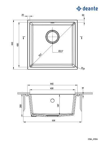 Мойка Deante ZQA_A10A Corda кухонная 44x44 см, алебастр