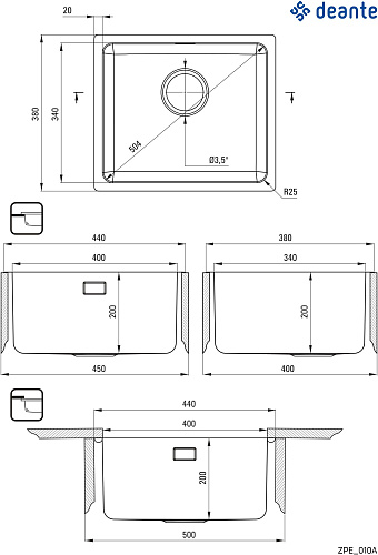 Отделка: сталь. Способ монтажа: впускаемый, подвесной. Минимальная ширина шкафа [мм]: 450. Глубина чаши 1 [мм]: 200. Вырез в столешнице (впускаемая) - длина [мм]: 420. Вырез в столешнице (впускаемая) - ширина [мм]: 420. Вырез в столешнице (подвесная) - длина [мм]: 400. Вырез в столешнице (подвесная) - ширина [мм]: 400. Толщина стали [мм]: 1. Вид клапана: мануальный. Компактный сифон Space-Saver: да. Телескопический сифон: да. Возможность подключения посудомоечной/стиральной машины: да. Крышка дренажного отверстия. Высокопрочная нержавеющая сталь. Мойка с сифоном для подключения к посудомоечной машине. Естественные антисептические свойства стали. Специальное средство, безопасное для очищаемых поверхностей. Компактный сифон Space-saver позволяющий ограничит место под мойкой.