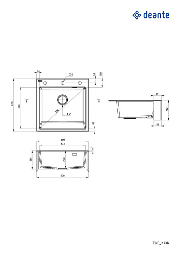 Мойка Deante ZQE_A10K Eridan кухонная гранитная 60x61 см, полувстраиваемая, алебастр