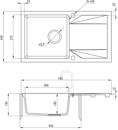 Способ монтажа: впускаемый. Минимальная ширина шкафа [мм]: 500. Глубина чаши 1 [мм]: 180. Вырез в столешнице (впускаемая) - длина [мм]: 760. Вырез в столешнице (впускаемая) - ширина [мм]: 420. Универсальный: да. Количество готовых отверстий: 2. Количество фрезерованных отверстий: 0. Вид клапана: автоматический. Компактный сифон Space-Saver: да. Возможность подключения посудомоечной/стиральной машины: да. Свойства гранита Deante: ударопрочность, выносливость на высокую температуру, обесцвечивание, термический удар. Самая продолжительная гарантия 18 лет. Мойка с сифоном для подключения к посудомоечной машине. Аксессуары с автоматическим отключением слива. Гидрофобные свойства отталкивают молекулы воды. Реверсивная мойка - установите чашу слева или справа. Арматура, равномерно окрашенная в массе. Компактный сифон Space-saver позволяющий ограничит место под мойкой. Специальное средство, безопасное для очищаемых поверхностей. Отделка, обогащенная ионами серебра, придает антисептические свойства.