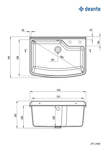 Мойка Deante ZYT_310B Garden кухонная хозяйственная 61х44.5 см, серый