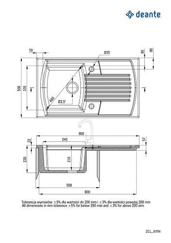 Мойка Deante ZCL_611N Lusitano кухонная керамическая 86х50 см, белый купить по доступной цене