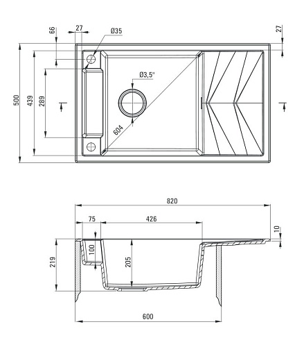 Способ монтажа: впускаемый. Минимальная ширина шкафа [мм]: 600. Глубина чаши 1 [мм]: 205. Вырез в столешнице (впускаемая) - длина [мм]: 800. Вырез в столешнице (впускаемая) - ширина [мм]: 480. Универсальный: да. Количество готовых отверстий: 2. Отделка: сталь. Вид клапана: автоматический. Компактный сифон Space-Saver: да. Телескопический сифон: да. Возможность подключения посудомоечной/стиральной машины: да. Свойства гранита Deante: ударопрочность, выносливость на высокую температуру, обесцвечивание, термический удар. Мойка с сифоном для подключения к посудомоечной машине. Гидрофобные свойства отталкивают молекулы воды. Исключительно просторная и глубокая чаша вмещает даже противни, вынутые из духовки. Реверсивная мойка - установите чашу слева или справа. Магниты, встроенные в корпус раковины. Можно приобрести аксессуары, которые идеально подойдут к этой модели. Самая продолжительная гарантия 18 лет. Можно приобрести поручень для полотенца, идеально подходящий к данной модели. Возможность приобрести крючок для губки, который идеально подходит к данной модели. Компактный сифон Space-saver позволяющий ограничит место под мойкой. Специальное средство, безопасное для очищаемых поверхностей.