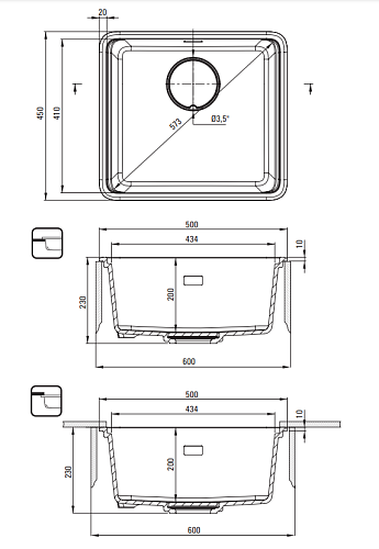 Способ монтажа: впускаемый, подвесной. Минимальная ширина шкафа [мм]: 600. Глубина чаши 1 [мм]: 200. Вырез в столешнице (впускаемая) - длина [мм]: 480. Вырез в столешнице (впускаемая) - ширина [мм]: 430. Вырез в столешнице (подвесная) - длина [мм]: 460. Вырез в столешнице (подвесная) - ширина [мм]: 410. Универсальный: да. Отделка: сталь. Вид клапана: мануальный. Компактный сифон Space-Saver: да. Возможность подключения посудомоечной/стиральной машины: да. Глубокая чаша. Возможен монтаж под столешницей. Декоративная заглушка к сифону. Свойства гранита Deante: ударопрочность, выносливость на высокую температуру, обесцвечивание, термический удар. Гидрофобные свойства отталкивают молекулы воды. Компактный сифон Space-saver позволяющий ограничит место под мойкой. Специальное средство, безопасное для очищаемых поверхностей.