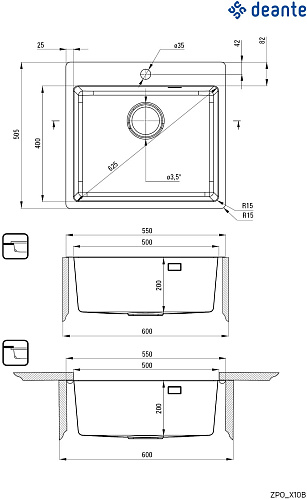 Мойка Deante ZPO_010B Olfato кухонная 55х50.5 см, брашированная сталь