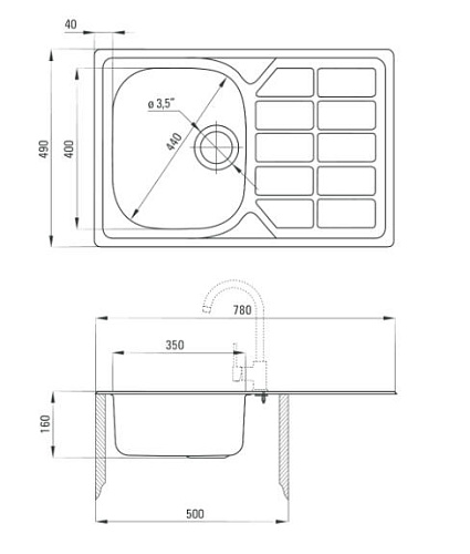 Способ монтажа: впускаемый. Минимальная ширина шкафа [мм]: 500. Глубина чаши 1 [мм]: 160. Вырез в столешнице (впускаемая) - длина [мм]: 760. Вырез в столешнице (впускаемая) - ширина [мм]: 470. Толщина стали [мм]: 0. 6. Универсальный: да. Количество готовых отверстий: 0. Отделка: сталь. Вид клапана: мануальный. Возможность подключения посудомоечной/стиральной машины: да. Высокопрочная нержавеющая сталь. Мойка с сифоном для подключения к посудомоечной машине. Естественные антисептические свойства стали. Специальное средство, безопасное для очищаемых поверхностей.
