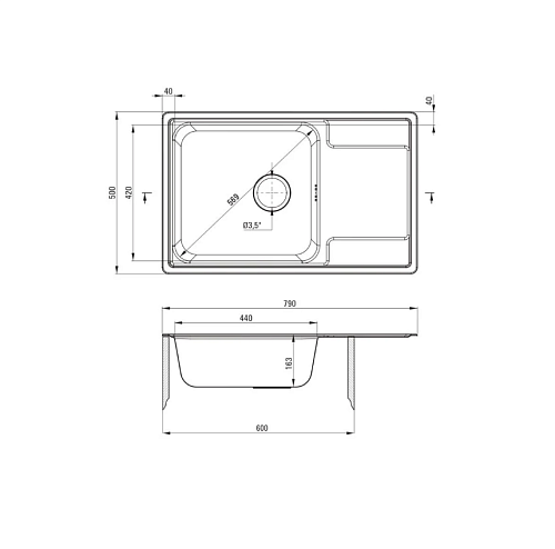 Способ монтажа: впускаемый. Минимальная ширина шкафа [мм]: 600. Глубина чаши 1 [мм]: 165. Вырез в столешнице (впускаемая) - длина [мм]: 770. Вырез в столешнице (впускаемая) - ширина [мм]: 480. Толщина стали [мм]: 0. 6. Универсальный: да. Количество готовых отверстий: 0. Отделка: сталь. Вид клапана: мануальный. Возможность подключения посудомоечной/стиральной машины: да. Высокопрочная нержавеющая сталь. Естественные антисептические свойства стали. Мойка с сифоном для подключения к посудомоечной машине. Специальное средство, безопасное для очищаемых поверхностей.