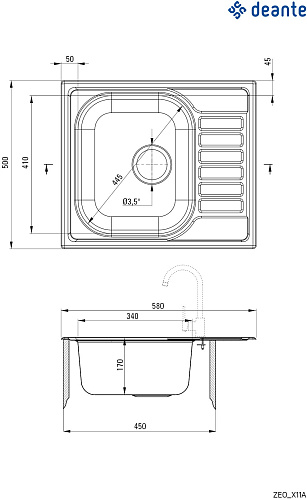 Мойка Deante ZEO_311A Soul кухонная 58x50 см, сатин + декор купить по доступной цене