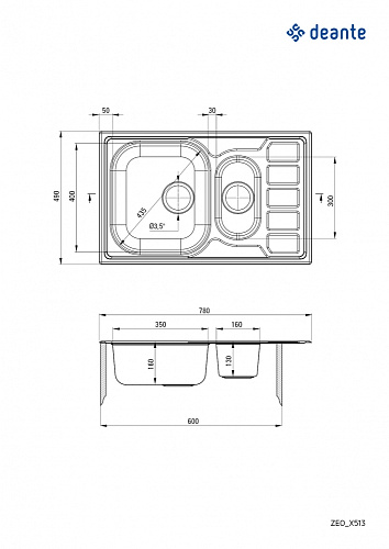 Мойка Deante ZEO_3513 Soul кухонная 78x49 см, сатин + декор купить по доступной цене
