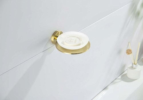 Материал - Латунь Мыльница из матового стекла Держатель из нержавейки Упаковано в белую коробку Размеры: 137*120*54мм