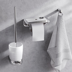 Оснащение A30341500 Держатель для туалетной бумаги с полкой, A3033300Стойка с туалетной щеткой, A3035500 Крючок для полотенец, комплект креплений.