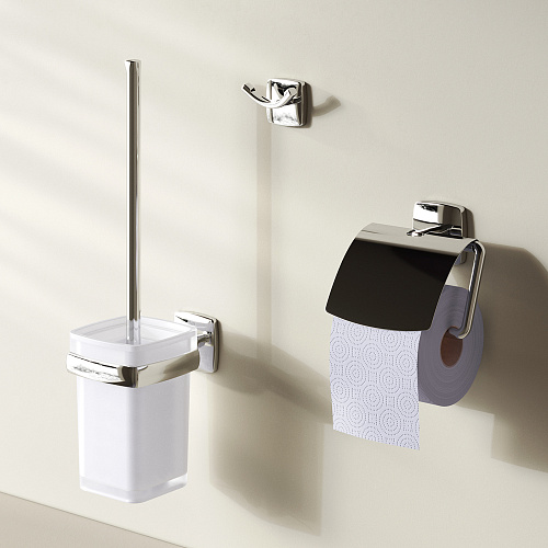 Метод крепления: шурупы. Набор дизайнерских аксессуаров от AM.PM станет идеальным завершением образа современной туалетной комнаты. Занимая минимум места в пространстве аксессуары Gem помогут рационально организовать место для хранения и станут стильными акцентами в интерьере. В комплекте: двойной крючок для полотенец держатель для туалетной бумаги с крышкой стойка с туалетной щеткой. Дерзкая и стильная коллекция Gem превращает даже простые аксессуары для ванной комнаты в классные дизайнерские детали которыми хочется пользоваться каждый день. Форма аксессуаров повторяет линии смесителей коллекции подчеркивая единую концепцию дизайна. Премиальные детали: массивное матовое стекло прямоугольной формы. Лазерная обработка стыков – ультратонкий шов и 100% защита от влаги.