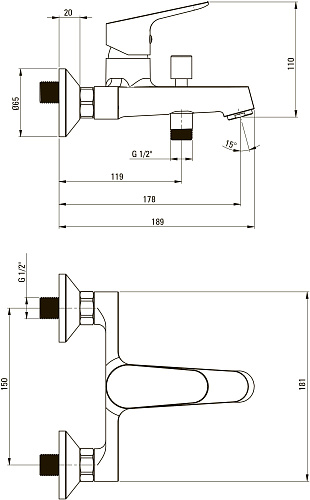 Набор смесителей Deante BUTB010M Tubo 3 в 1, хром