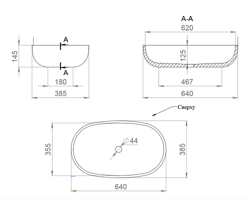 Раковина накладная Salini 1102205M Gloria 05, 64х39 см, материал S-Stone - матовой
