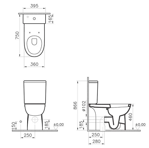 Унитаз-компакт Vitra 9832B003-7204 Conforma напольный 39х75 см для людей с ограниченными возможностями, с сиденьем, белый
